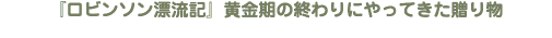 わたしはきっと、谷川雁さんがいう、木も小川も動物も、怪物だって戯れる相手にしてしまう「幻想性の時代」(『意識の海のものがたりへ』)を生きていたのだ、と思う。8歳、小学3年生、と谷川さんが指定した、「人生の二番目の黄金期」。たぶん、『ロビンソン漂流記』はそんな黄金期の終わりにやって来た、贈り物だったのだ。わたしはそのとき、小学4年生、9歳か10歳であったか。