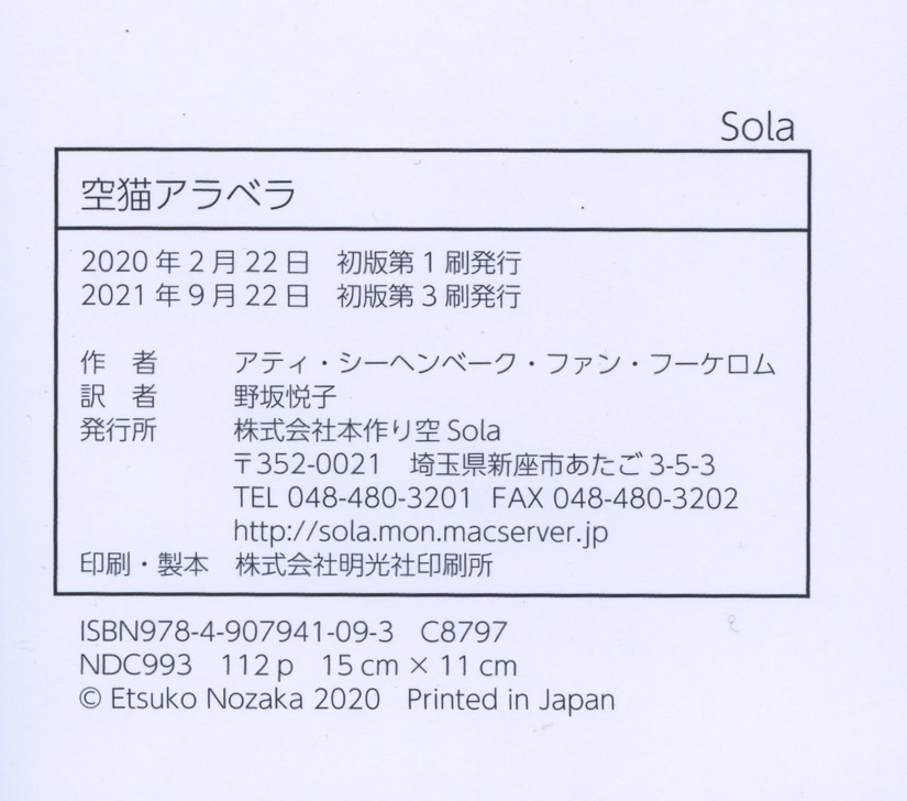 おかげさまで『空猫アラベラ』を増刷することになりました。