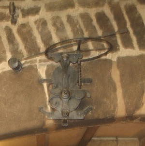 暖炉の上の金具。自在鍵のようにここに何かを架けるのでしょうか?