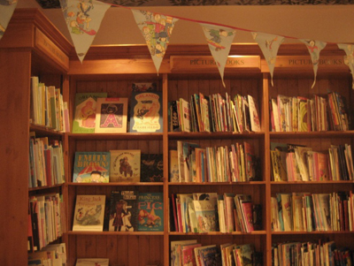 旅行の最終日に、ロンドンのチェルシーの街を歩いていたときに、本屋さんを見つけて入りました。私たちが旅で巡った物語がちゃんと並んでいるし、絵本のコーナーには日本でおなじみの絵本もあるし、小さいながら安心できる本屋さんでした。