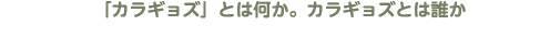 トルコに影絵芝居が入ってきたルートは、いくつか考えられる。ひとつは、中国から中央アジアを通ってシルクロードを運ばれてきたとするもの。ほかに、イランから、エジプトから、またはスペインかポルトガルからもたらされたという説もあるが、研究者のあいだでもまだ答えは出ていない。さらに、トルコ、ギリシャ、中央アジアのいくつかの国のあいだでは、「わが国こそが『カラギョズ』発祥の地である」という“本家合戦”が続いている。トルコの位置するヨーロッパとアジアの境目、イスタンブールから小アジアにかけては、紀元前のメソポタミア文明に始まって、数えきれない文明・文化・民族が通りすぎた。当然、ギリシャ・ローマ文明もそのなかに含まれているので、『本家合戦』が起こるのも無理はない。