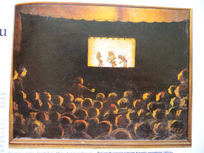 画家ムアッゼズの『カフェで「カラギョズ」を観る人々』。雑誌『ターリヒ』107号65ページ(©Türkiye Ekonomik Toplumsal Tarih Vakfı/トルコ社会経済歴史基金)