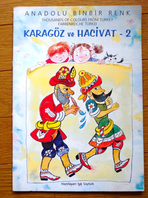 子ども向け「カラギョズ」の本。英語とドイツ語にも訳されている。内容は台本とぬり絵。おまけでシールもついている。が、あまりかわいくない(©Filiz Yayıncılık/フィリズ出版)