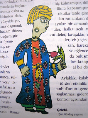 イスタンブールぼんぼんのチェレビ。人形はウール・ギョクタシュの作。雑誌『ターリヒ』107号50ページ