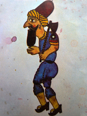 トゥズスズ(右)はナイフを持って、いささか物騒。ラズ人(左)はバイオリンを持っている。人形はウール・ギョクタシュの作。雑誌『ターリヒ』107号66ページ