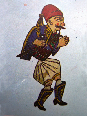 アルナヴット(アルバニア人)。身につけているのは、アルバニアの民族衣装・フスタネーラ。今日でも、アルバニア親衛隊の制服として残っている(タージェッティン氏の見本帳より)