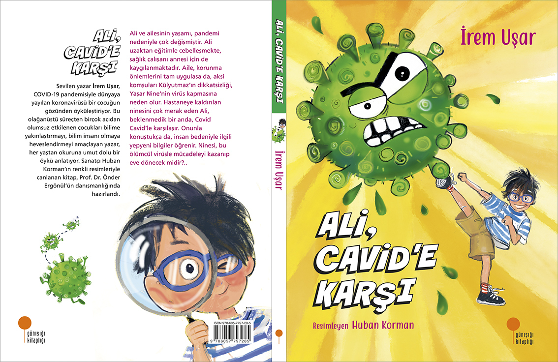 ところが、コロナウイルスの流行でそんな普通の毎日が大きく変わってしまった。学校の授業はぜんぶ、オンラインになってしまい、アリはなかなか慣れることができない。フェリデさんは医療従事者なので、アリはお母さんの健康も心配だ。お母さんの仕事が仕事だけに、家族は予防に細心の注意を払っていた。ところが近所のひとの不注意のせいで、ヤシャルおばあちゃんがコロナウイルスに感染してしまったのだ。おばあちゃんは病院へ運ばれていき、アリは心配でたまらない。そんななか、アリはコロナウイルスの存在から、人間の体に関する新たな知識を見いだすことになる。