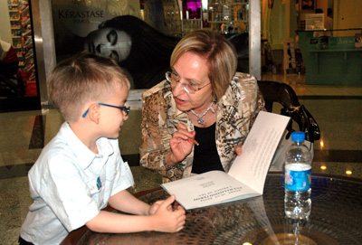 ショッピングセンターで開かれたサイン会にて、小さな読者と