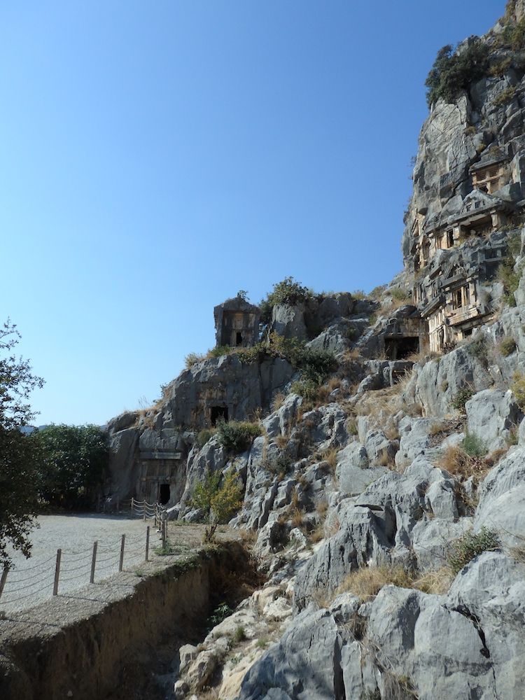 断崖に墓が重なるようにして掘られた光景があまりに格好よいので、しばしネクロポリスの前をうろうろして思う存分写真を撮りました。これは、聖ニコラウスがミュラに登場する前の墓ですから、司教時代の聖ニコラウスもながめた場所だと思います。