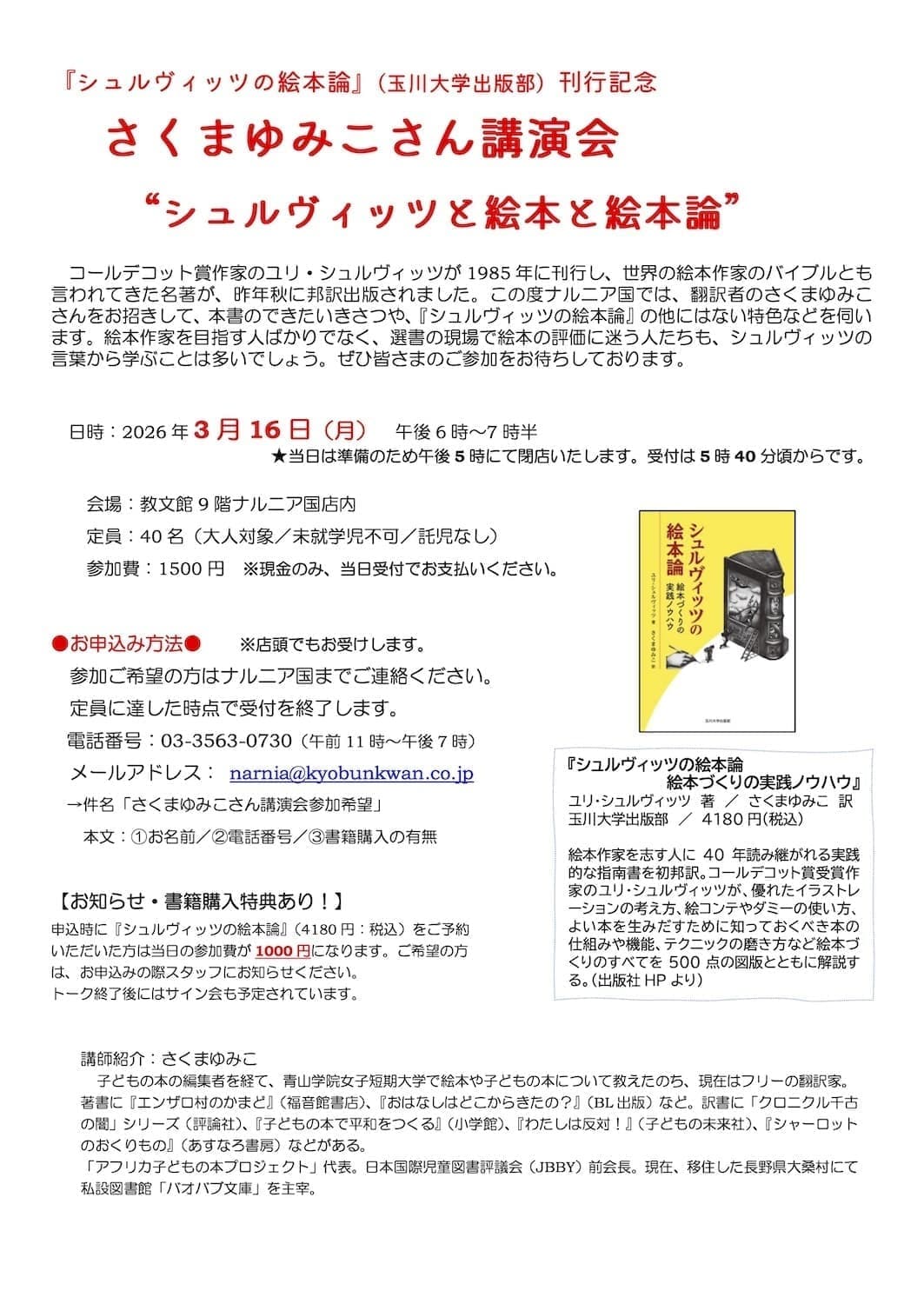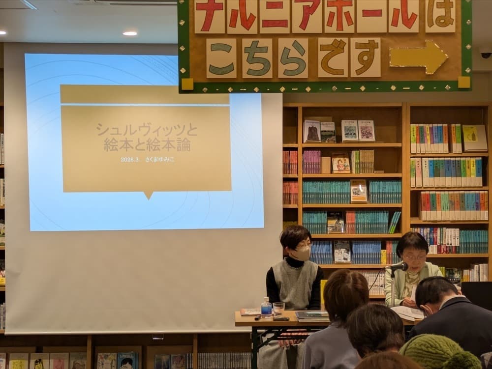 さくまゆみこさん講演会“シュルヴィッツと絵本と絵本論”が東京・銀座の教文館9階ナルニア国にて開催されました。