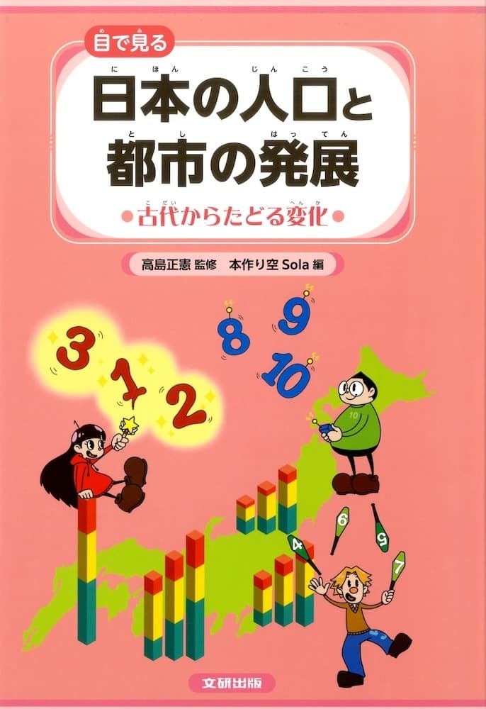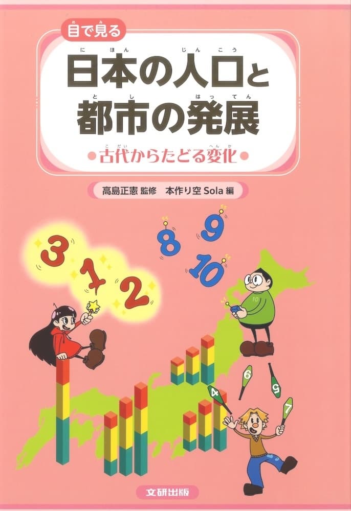| 内 容 | (1)シリーズ概要 日本の都市はどのように成立し発展してきたのか、人口はどのように変化してきたのか、数字やグラフから日本のすがたを学び、未来を考えるシリーズ全3巻。ひと味ちがう視点から歴史や社会にたいする理解を深めることができます。 (2)今回紹介するのは「古代からたどる変化」 ・第1巻では、縄文時代から江戸時代までをたどります。その間に、人口の変化には大きな3つの波があり、人口の増減の要因としてどんなことがあげられるのかを考えながら、当時の環境や社会について学んでいきます。 ・数字を視覚的にとらえるために、さまざま種類のグラフや図表を掲載しており、変化の大きさを実感したり、数字のちがいを見比べたりしやすいようになっています。 ・各時代の風景やくらしぶりなどについてよりイメージしやすいように、画像を豊富に掲載しています。 ・〈数字の国〉からやってきた三人組、モノ、ペンタ、デカが注目のポイントについて各ページでつぶやくので、楽しく読み進める手助けをしてくれます。 (出版社HPより引用) |